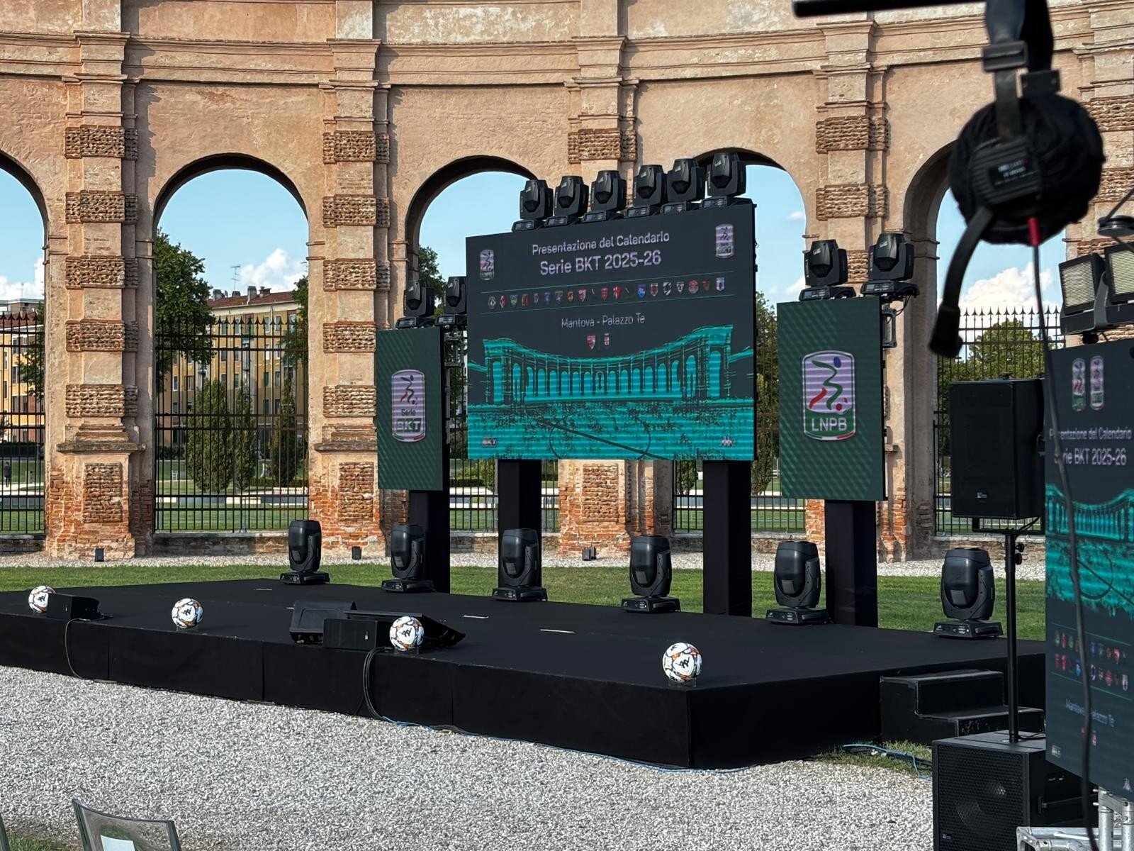 In the magnificent setting of Palazzo Te in Mantua, the 2025/2026 Serie BKT fixture list was officially unveiled at the end of July. For this live event attended by clubs, institutions, and sports guests—the rental company MySound chose to deploy 84 Yes Tech P2.6 MG6S LED panels, creating five rectangular LED walls of different sizes. This technological setup successfully met the environmental challenges of the venue, delivering flawless visual performance.