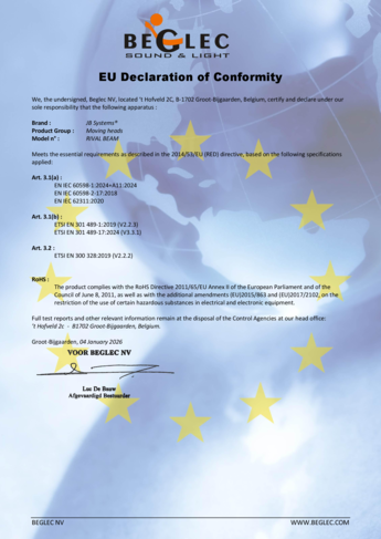RIVAL BEAM is a beam-type moving head designed for events requiring power, precision, and reliability even in challenging conditions. Its IP65 design makes it completely protected from rain and dust, making it ideal for both outdoor use and permanent indoor installations where protection from smoke and dirt allows for minimal maintenance over time. Despite its robustness, it remains compact and easy to handle, with compact dimensions and a weight of just over 15 kg, allowing it to easily integrate into any setup.