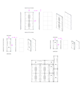 This allows LED walls to be created in 25 cm steps, both horizontally and vertically (using the other two available cabinets of the same type), which would normally require a custom design, resulting in additional costs and longer delivery times. In this specific case, the cabinet measures 250 x 750 mm.