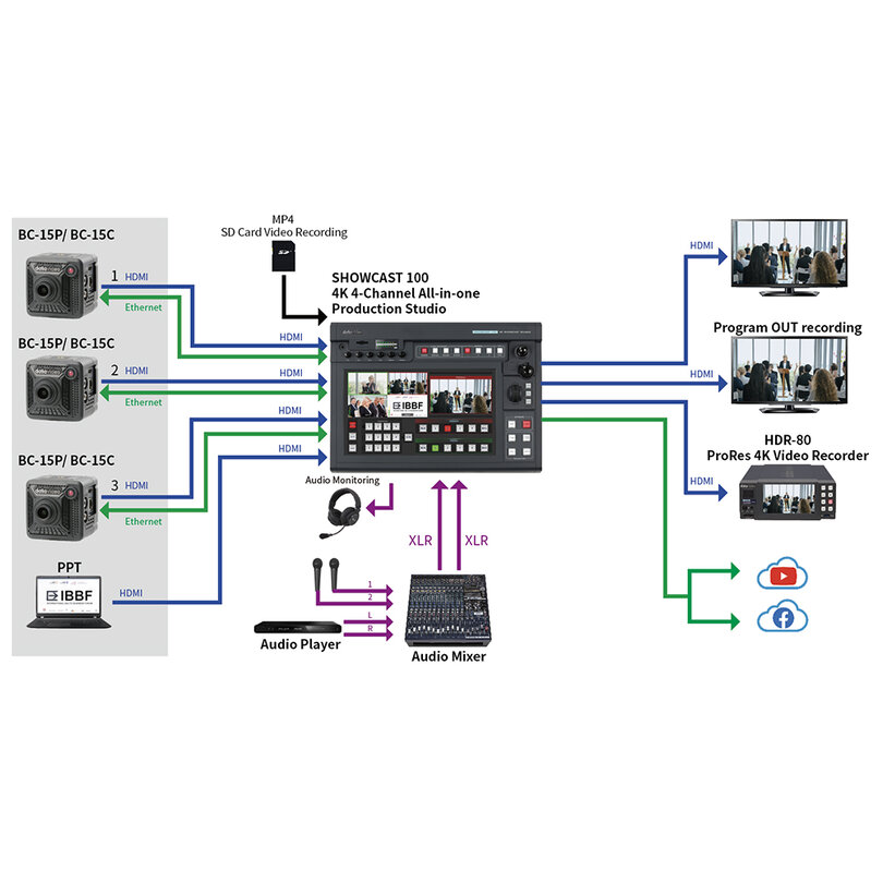 - NDI connection for smooth streaming and easy integration into network-based workflows