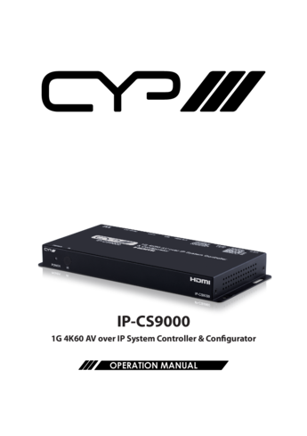 The IP‑CS9000 is the master controller designed to manage the entire IP‑9000 series CYP AV over IP ecosystem, offering a centralized platform for controlling, configuring, and monitoring 4K 60 4:4:4 transmitters and receivers over a 1 Gb network.