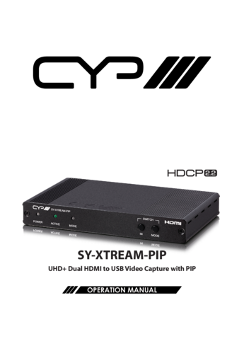 The SY-XTREAM-PIP is an HDMI capture device with USB output designed to handle two simultaneous HDMI sources, offering Picture-in-Picture (PIP) and switching functions.