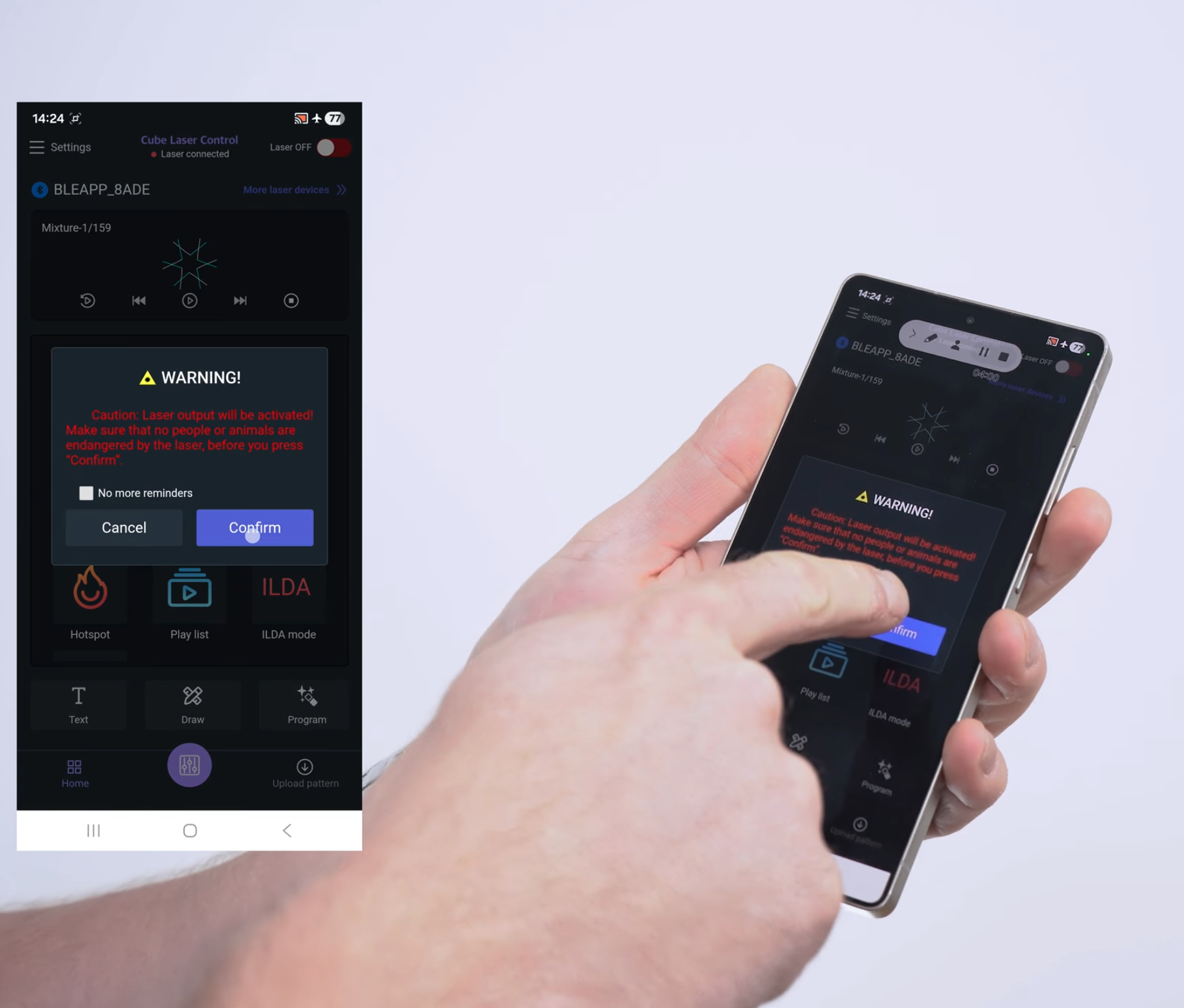 Another key advantage is the ability to store custom content directly within the laser. Once uploaded via the app, patterns can be recalled later via DMX or used in automatic mode, without the need to reconnect the device. This makes integration of the CUBE units into pre-programmed shows simple and immediate, while still retaining the flexibility of mobile control.