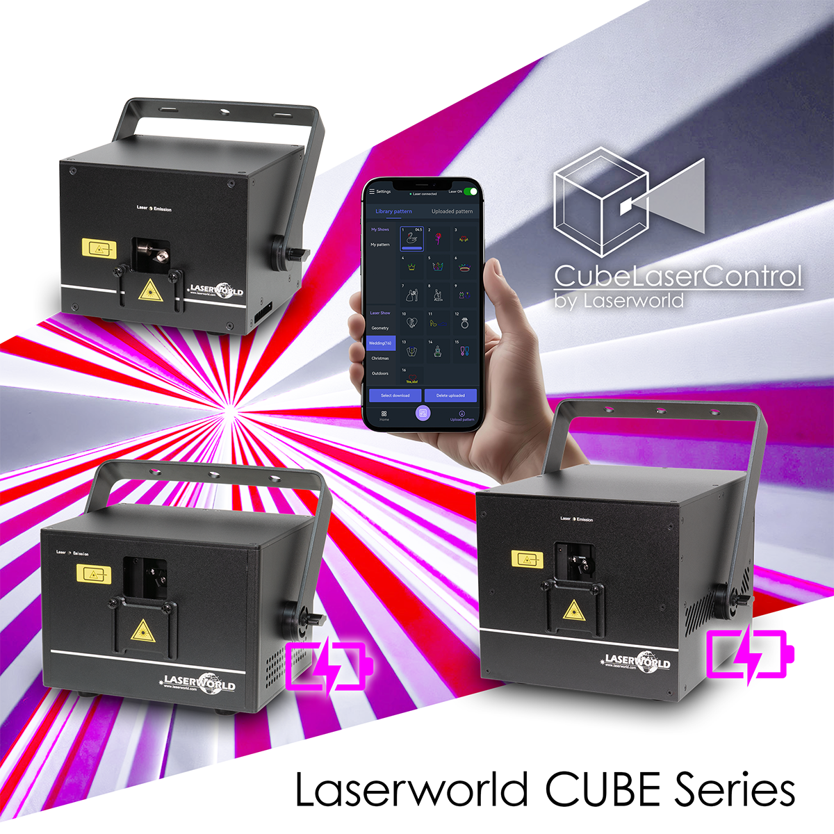 The Laserworld CUBE series represents a significant step forward in the compact laser segment, introducing features that until recently were only available in higher-end systems. App-based control, the ability to create and customize graphic content directly from a smartphone, and the presence of an integrated battery on most models make these devices extremely versatile and suitable for a wide range of applications.