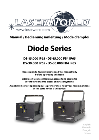 DS‑15.000 FB4 IP65 è un sistema laser RGB professionale da 15.000 mW, progettato per eventi di medie dimensioni e applicazioni outdoor grazie alla classificazione IP65. La sorgente laser completamente a diodi offre una resa cromatica intensa e un fascio estremamente definito, con specifiche di circa 5.5 mm / 1.1 mrad, garantendo elevata visibilità anche su lunghe distanze.