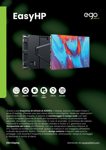 EASYHP-P1.8 è ideale per applicazioni commerciali e professionali che richiedono un display con un'ottima resa visiva, affidabile e con una manutenzione semplificata.
