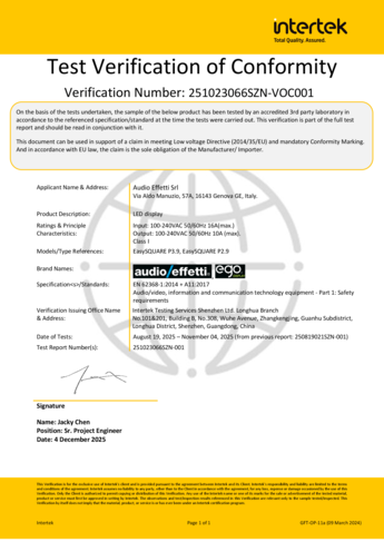 - Resistenza agli agenti atmosferici: certificazione IP65 per uso outdoor