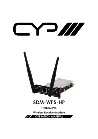 SDM‑WPS‑HP è un modulo SDM di ingresso wireless progettato per offrire un sistema di presentazione senza cavi, integrabile direttamente nei dispositivi CYP dotati di slot SDM, come la matrice OR‑32SDMI.