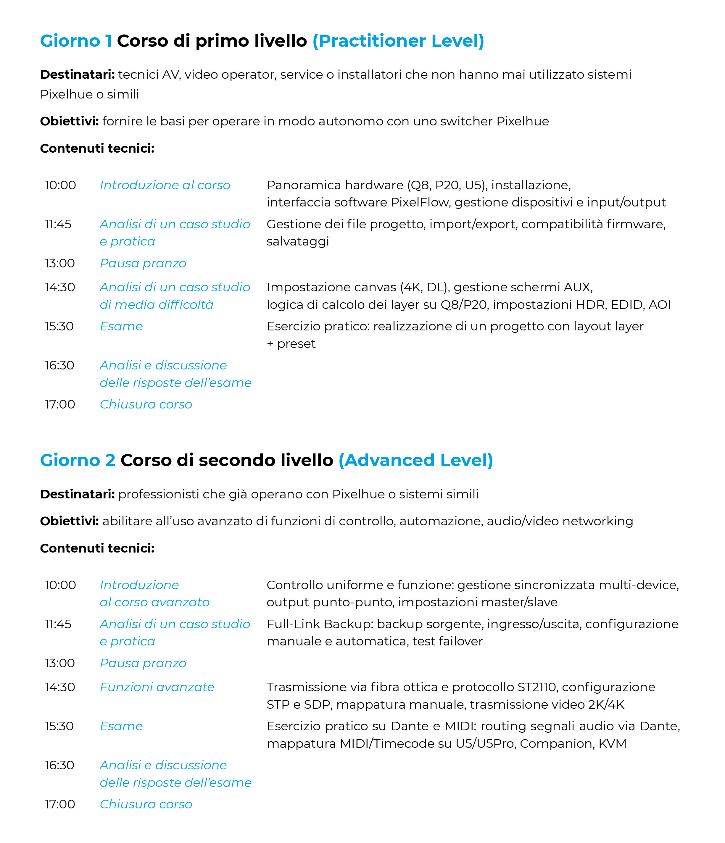 Il partecipante può scegliere se iscriversi a una sola giornata o a entrambe, in base al proprio livello di preparazione. In entrambi i casi, le sessioni combinano teoria e pratica su hardware reale (Q8, P20, U5) e si concludono con il rilascio di un attestato di partecipazione.