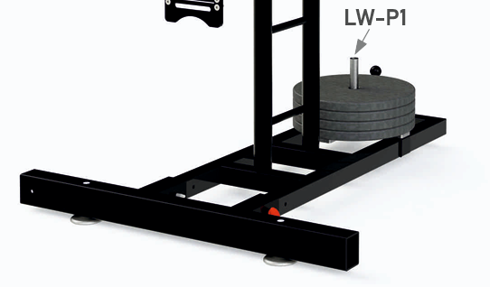 Questi ultimi meritano un breve approfondimento: LW-P1 è un supporto a barra da 25 mm di diametro per contrappesi di forma cilindrica da porre all’estremità della base per aumentare la stabilità. LW-P2 è invece un supporto per contrappesi standard da 20 kg cad. (CWA-20), quelli che si utilizzano negli attrezzi ginnici. In questo modo, si può decidere con precisione la quantità di contrappeso da applicare alla struttura.
